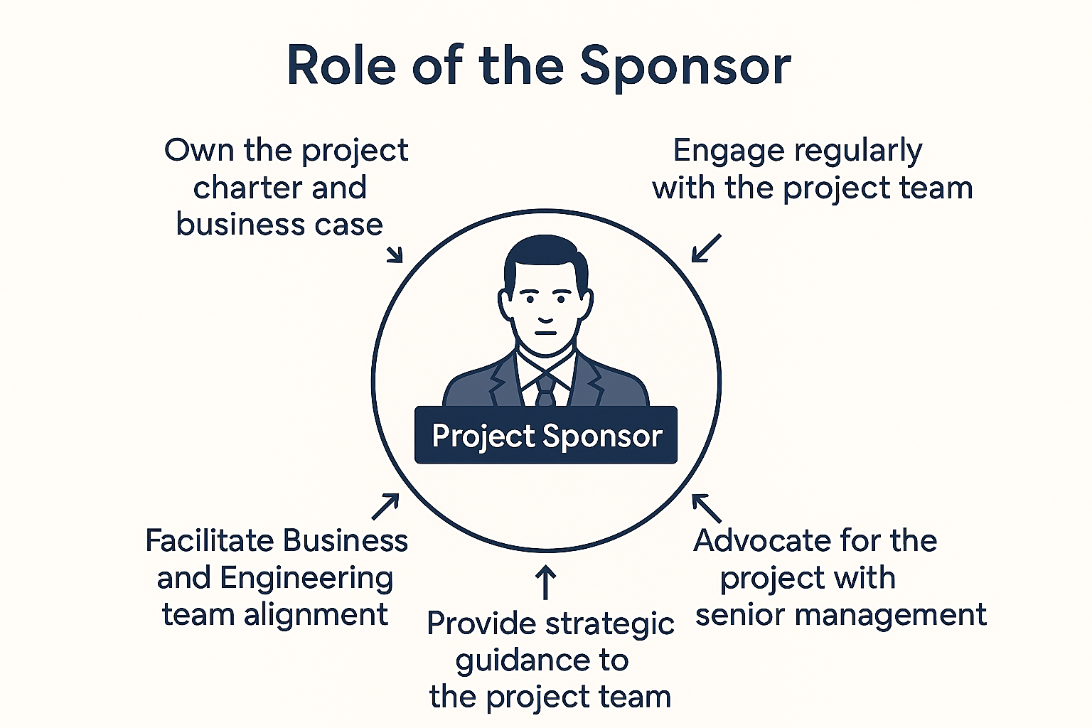 A sponsor acts as a project champion who can help clear roadblocks, align stakeholders, and accelerate decisions. They provide the “drive” that will make a project happen. Their leadership fosters better communication and alignment between the project team and decision makers. To be effective, a sponsor must: