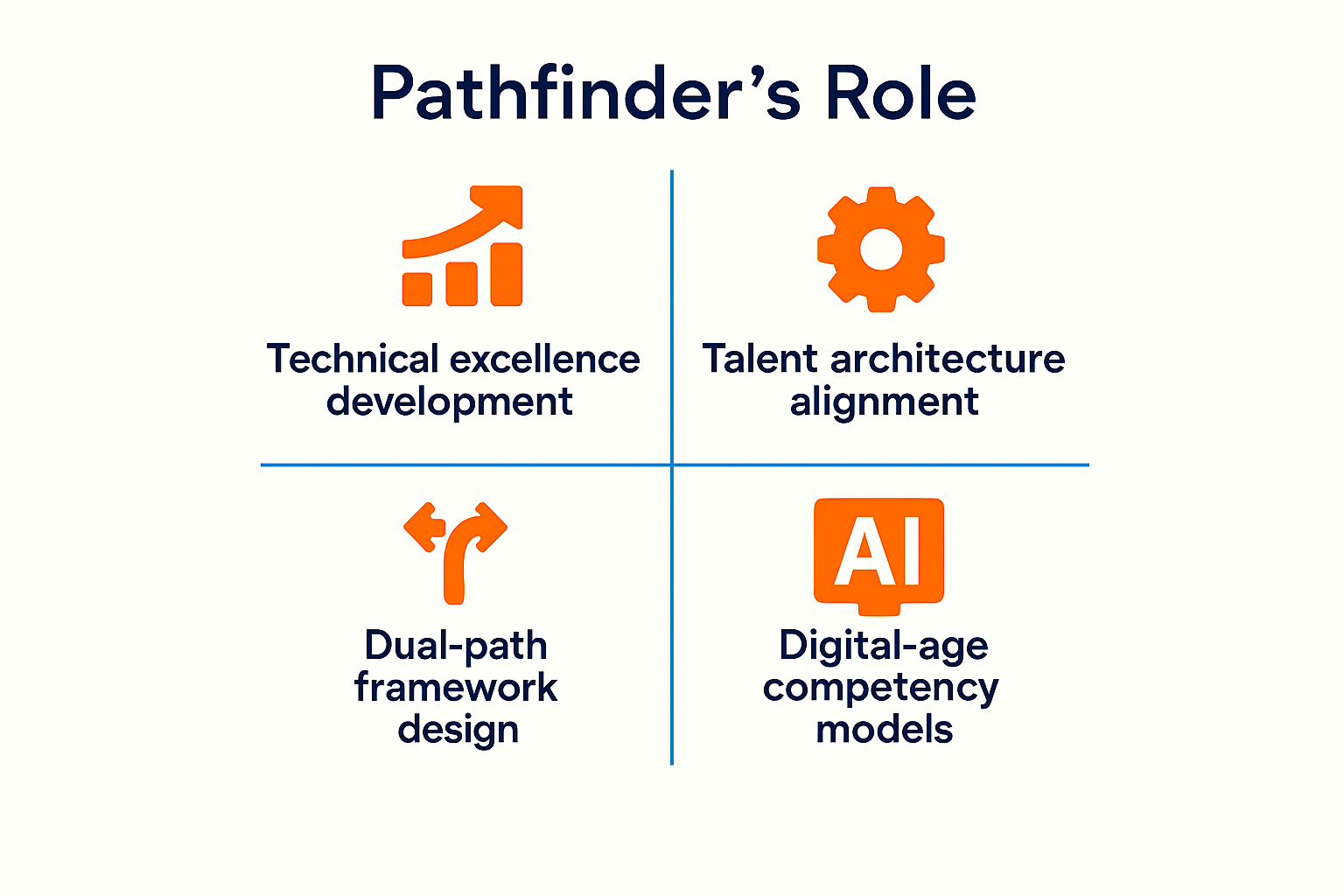 Since the 1990s, Pathfinder has monitored the growing interest in dual career paths for technical and managerial professionals across owner engineering organizations. That trend is even more relevant today. With organizations operating flatter structures and requiring deeper expertise, dual career frameworks provide a viable way to retain highly skilled professionals who prefer technical mastery over managerial progression.
