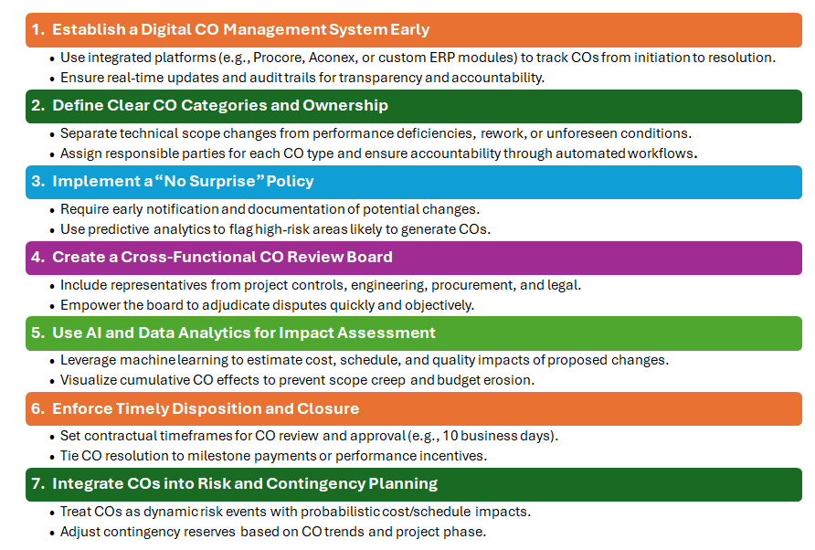 By embedding CO management into the digital backbone of the project and fostering a culture of transparency and accountability, organizations can transform COs from reactive firefighting into proactive project control.